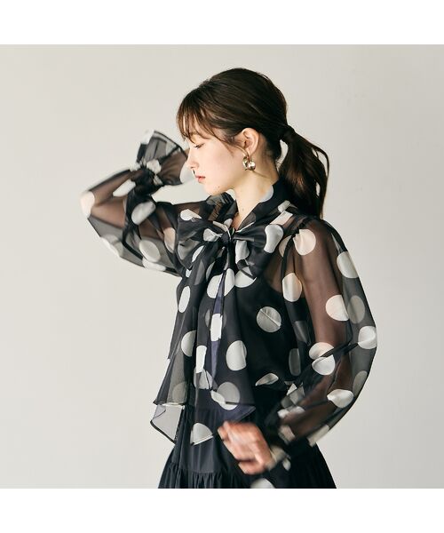・まるでベールを纏っているかのような装いが叶う、シアー素材の長袖ブラウス。