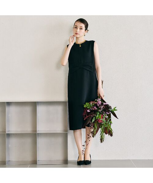 ・ALLブラックで仕上げた、Audie a Musesらしいリボンモチーフ付きのワンピース。
