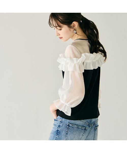 ・ボリュームのあるパフスリーブはほんのりと透ける生地を使用し、ふんわりとしながらも甘さ控えめで大人っぽい仕上がりに。