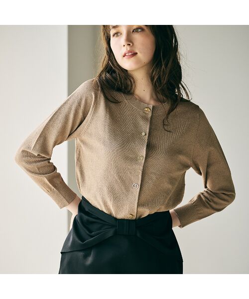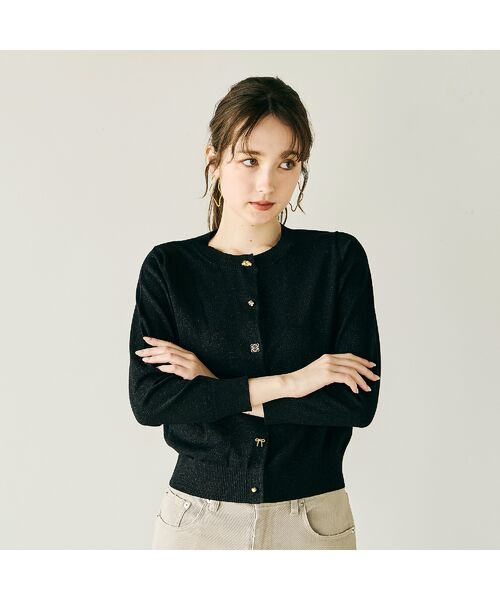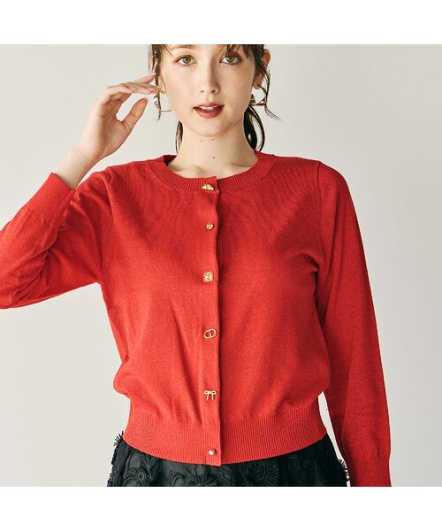 ・定番シルエットのコンパクトなカーディガンにメタルのモチーフ釦を並べたシンプルなアイテム。
