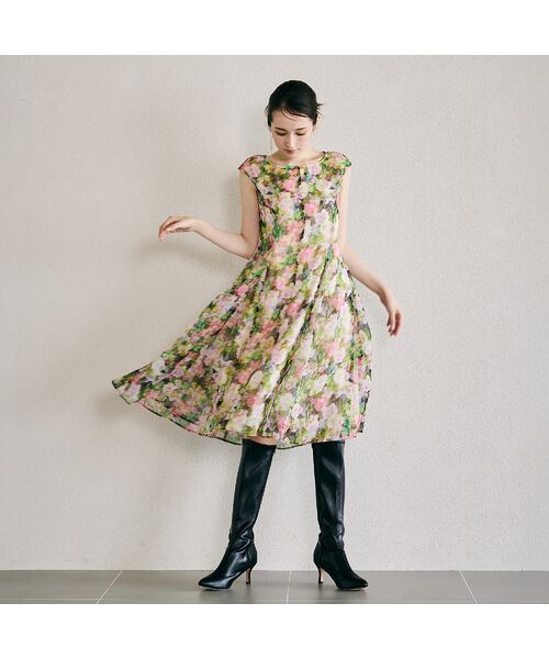 ・繊細なプリントが優しく上品で魅力あふれるシンプルでクリーンな印象のワンピース。