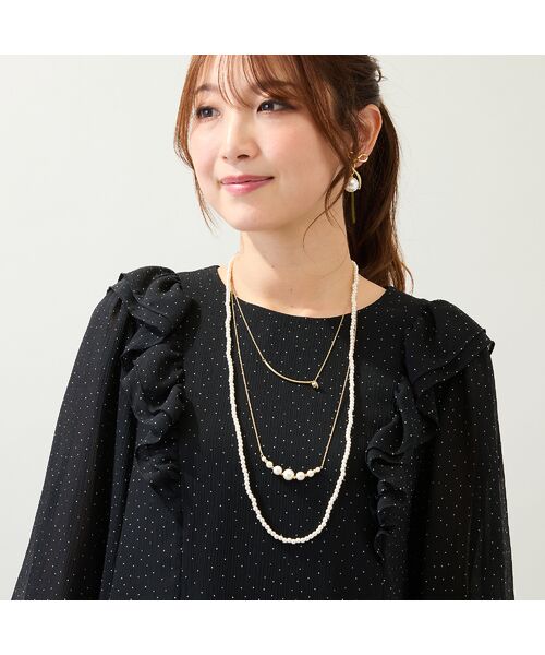 小さなパール調ビーズとバーネックレスを組み合わせた3連ネックレス。