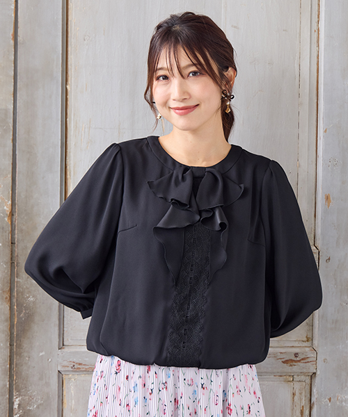 細かいシボ感と独特のシャリ感が魅力のジョーゼット素材を使用したバルーンブラウス。