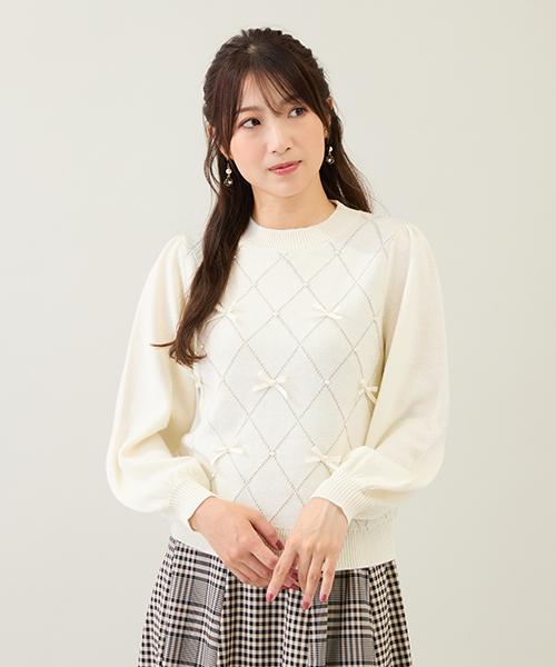 手首が覗く7分丈の袖は、ふんわりとボリュームを持たせつつ、女性らしい華奢な印象を引き立てるデザインに。