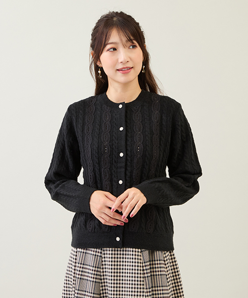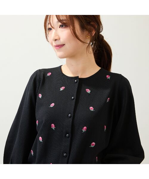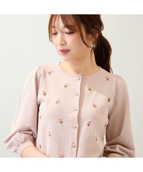 繊細なお花のつぼみ刺繍が上品なフェミニンなニットカーディガン。