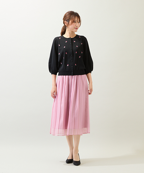 繊細なお花のつぼみ刺繍が上品なフェミニンなニットカーディガン。