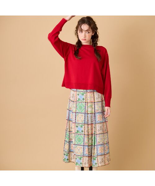 いろんなテイストの22fabricらしいデザインが、パッチワークのように並んだフレアスカート。