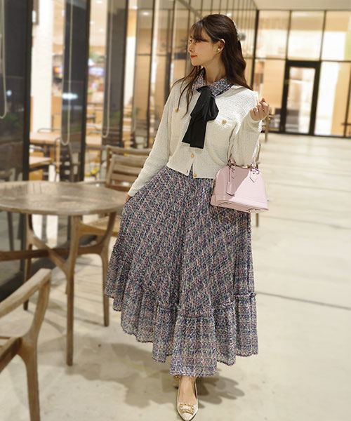 ・ふわっとした素材にツイード見えするプリントを施し、華やかな表情がコーディネートを上品に彩ります。
