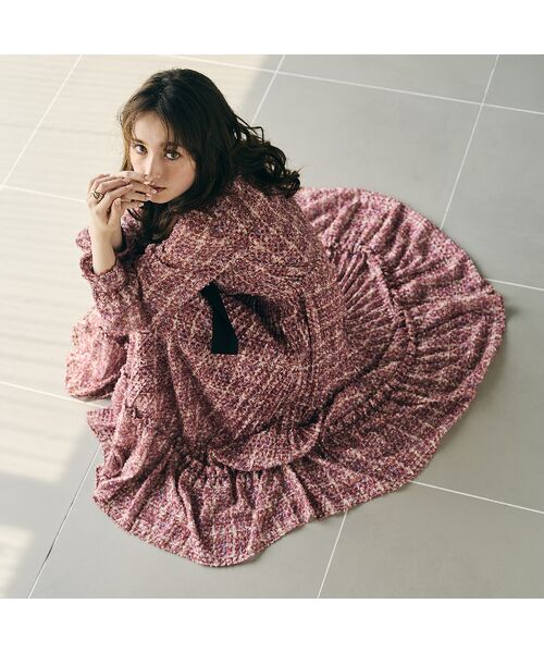 ・上品に着映える、クラシカルなムードたっぷりのツィードプリントワンピース。