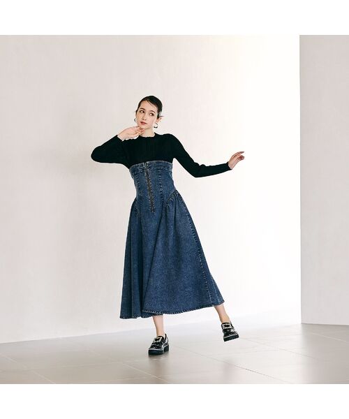 ・シーズンを選ばず着用できるデニム素材を使用したデザインワンピース。