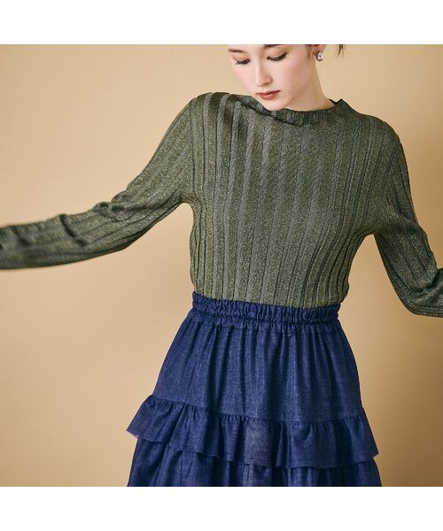 ・見る角度によってカラーの変化が楽しめるワイドリブラメニットプルオーバー。