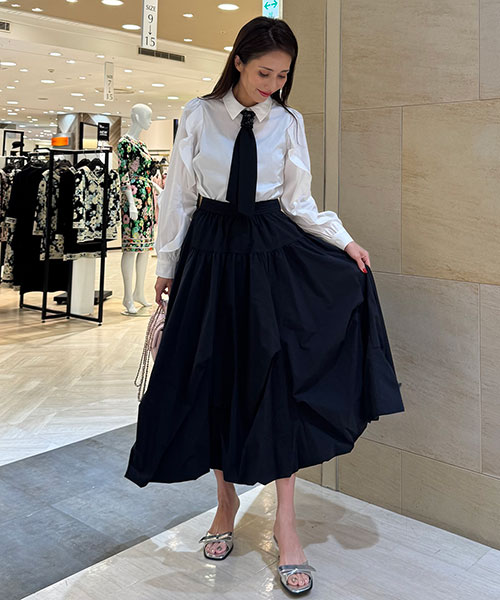 ・ふんわりとしたフリル付きの袖と、ネクタイのコントラストが新鮮。