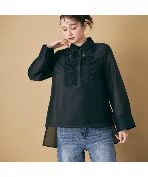 ・大きめのフラワーモチーフがラグジュアリーな印象のブラウス。