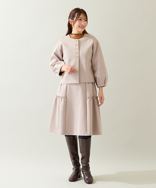 ・ボリュームのあるニットや袖デザインのトップスとも好相性