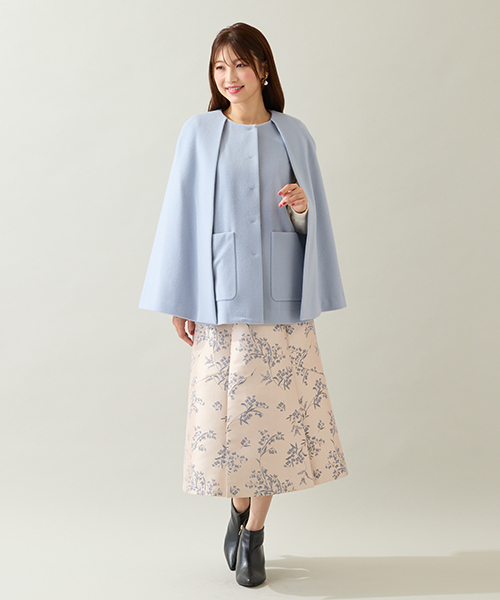 ・袖がケープデザインになったフェミニンなシルエットのショート丈コート
