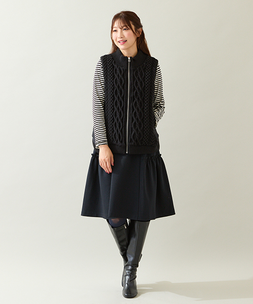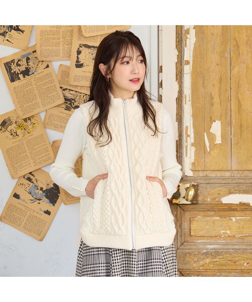 ・身頃のケーブル編みが目を引く、おとな可愛いアイテム