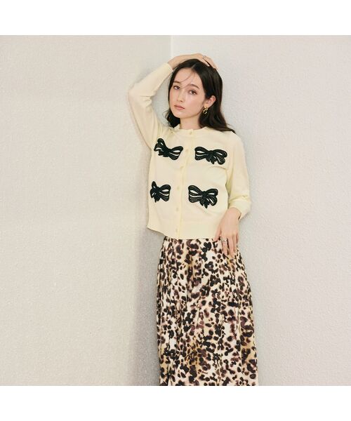 ・シンプルな本体にリボンモチーフを施したニットカーディガン。