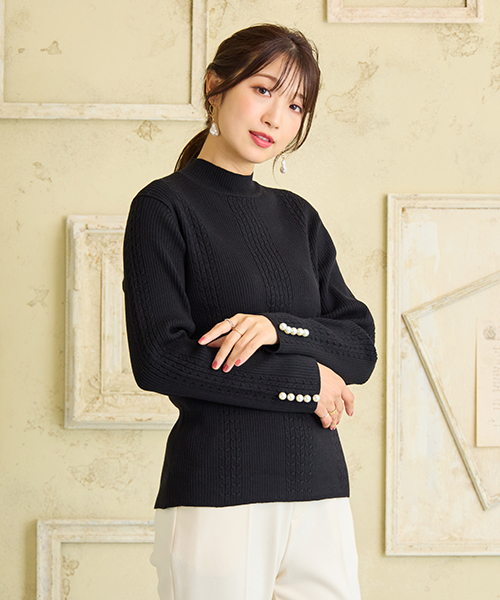 ・インナー使いしやすい、リブ×ケーブル編みのニットプルオーバー