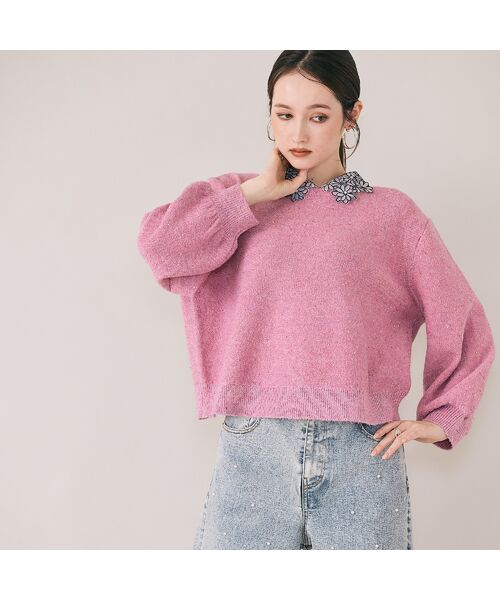 ・ふんわりと柔らかいシルエットに、きらりと光るスパンコールを編み込んだ大人レディな装いを演出するニットプルオーバー。