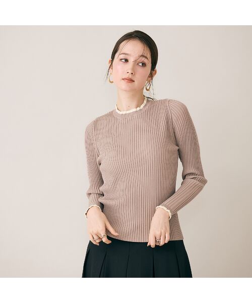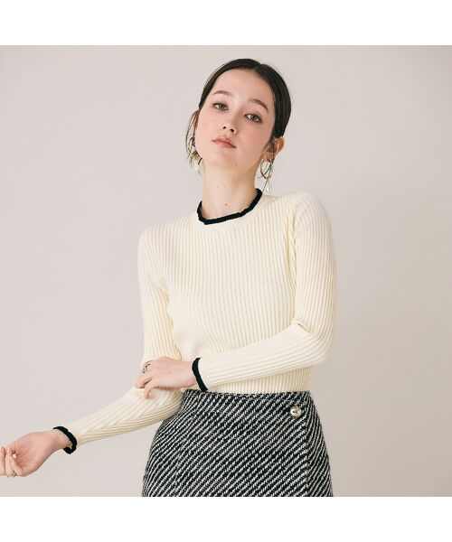 ・一見シンプルなクルーネックニットですが、首回りと袖口のバイカラーが効いた、スタイリッシュなニットプルオーバー。