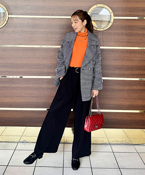 ・重厚感がありながら、程よい着丈と少しコクーンに仕上げたシルエットで抜け感もプラス。