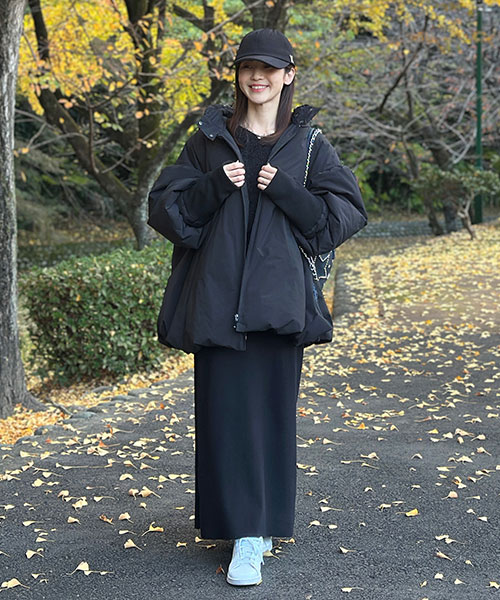 ・トレンドのボリュームスリーブは袖口の長めのリブとメリハリを効かせて、NEWダウンジャケットにアップデート。