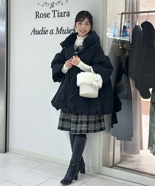 スタンダードなアイテムに女性らしい柔らかさを加え、モードに仕上げたオーディアミューズ。