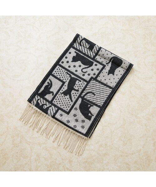優しい肌触りが暖かい、パッチワークのねこが個性的な日本製マフラー。