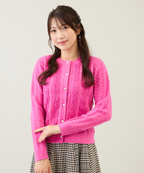 ・前身頃にはケーブル編みにレースをつけることでおとな可愛い印象に