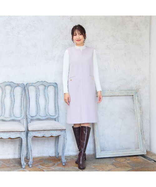 ・着こなしを楽しめるリブニット付きのジャンパースカート