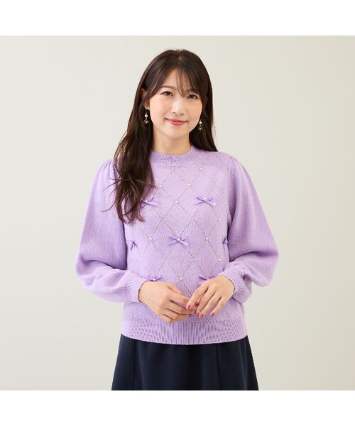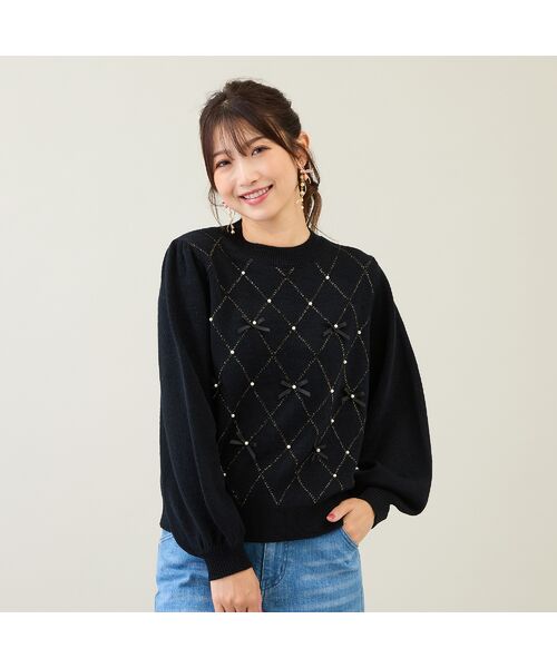 ・クロスジャカードの部分にはリボン×パール調スタッズをあしらい華やかな印象に