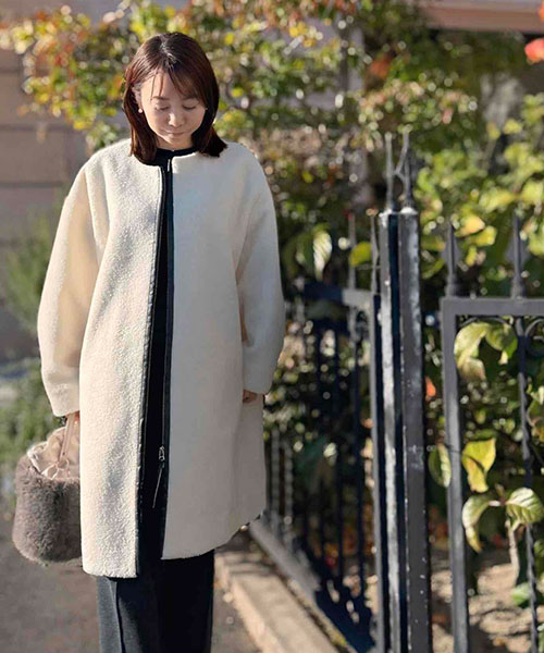・リボンの様に見える襟がアクセントのおとな可愛いショートコート