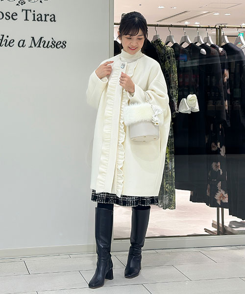 ・昨年人気だったフリル付きジャケットコートに新色のホワイトが登場!