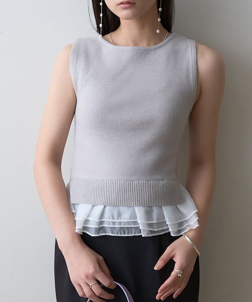 柔らかなニット素材と繊細なチュールを組み合わせた、