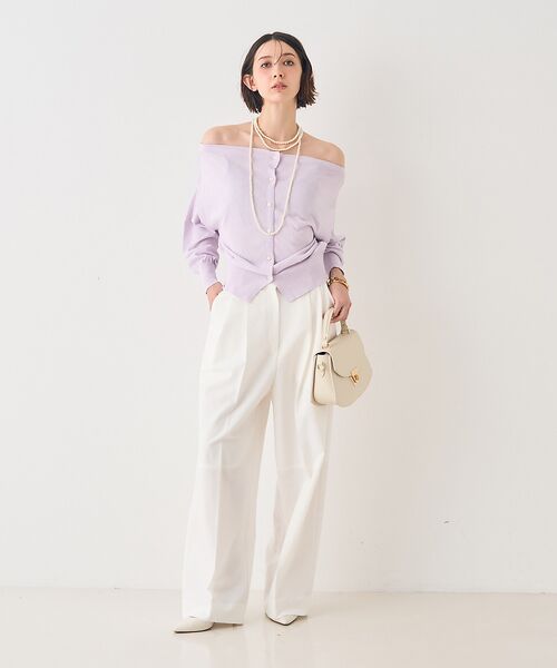 ハイウエスト&ワイドシルエットがスタイルアップ効果を発揮し、脚長見えも◎。