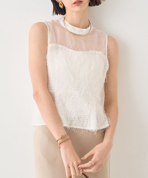 デコルテの透け感のある素材が程よい肌見せを演出し、