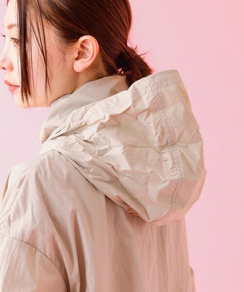 ウエストのドローコードでフィット感を調整でき、スタンドの襟元にはフードが収納可能です。