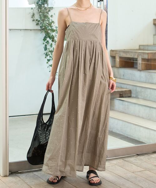 軽やかな生地にシルバー糸で施されたドット刺繍が、