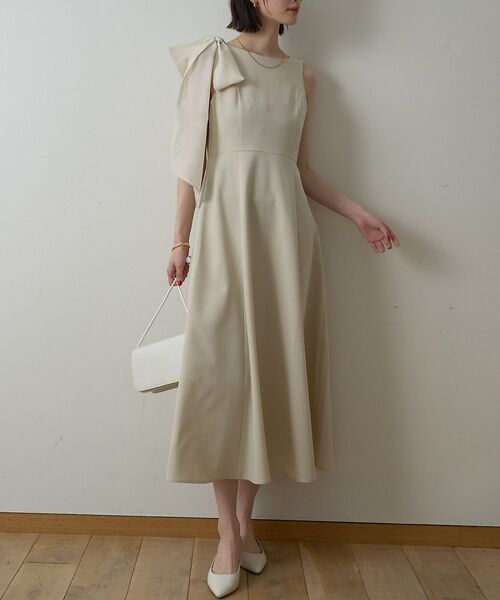 シフォンの肩リボンが、可愛らしさとフェミニンさを