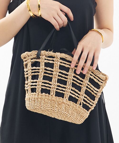 夏のコーディネートにぴったりな、巾着付きのカゴバッグ。