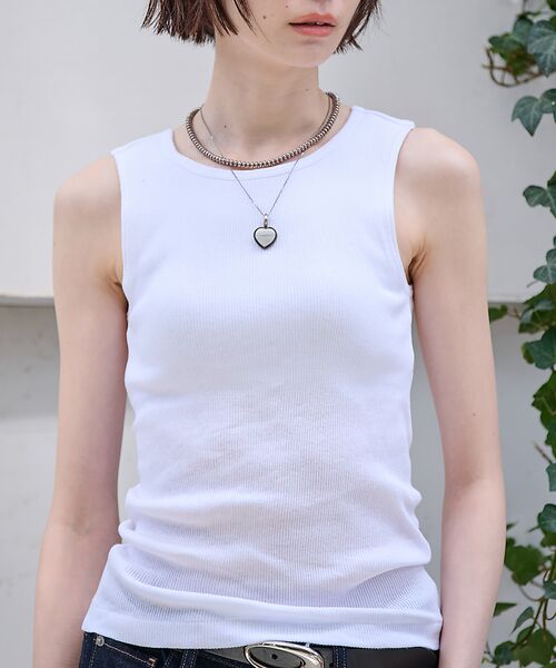 リブ編みの一種で生地の表面に凹凸感のあるテレコ素材は肌離れが良く、優れた伸縮性による心地良いフィット感が魅力。縫製されたブラカップ付きで、アンダーゴムを胴周り一周に入れているので着用時の安定感があります。