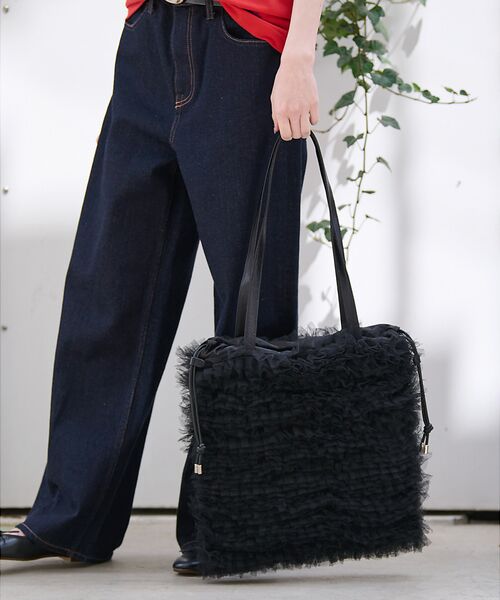 何重にも重ねたチュール使いが魅力的なトートバッグ。