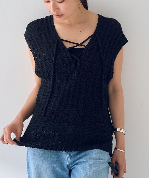 フロントには編み上げデザインを施し、