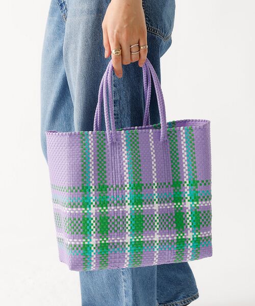 メルカドバッグは、メキシコに古くから伝わる技法で編まれた、再生プラスティック素材のかごバッグです。