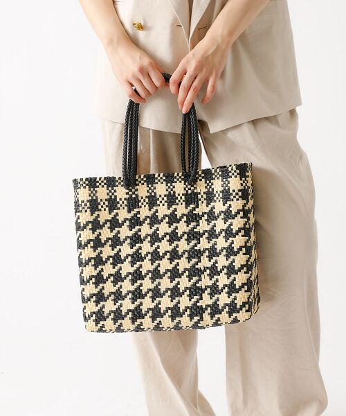 チェックや千鳥格子柄など、目を惹く柄のバッグはシンプルなコーデのアクセントに。