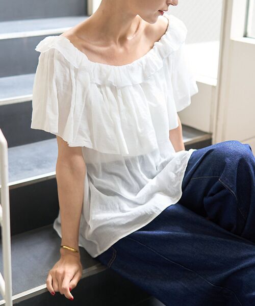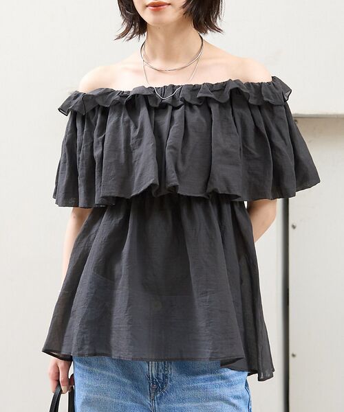 上質な薄手素材を使用したオフショルバルーンブラウス。