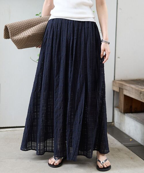 ブラウスで上品にと、コーデの幅も広がる万能夏スカートです。
