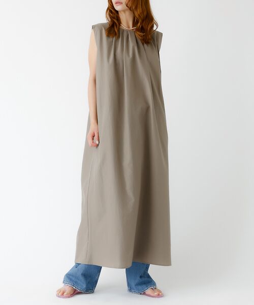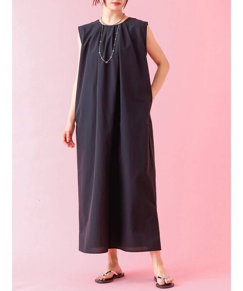 タックデザインのロングワンピース。