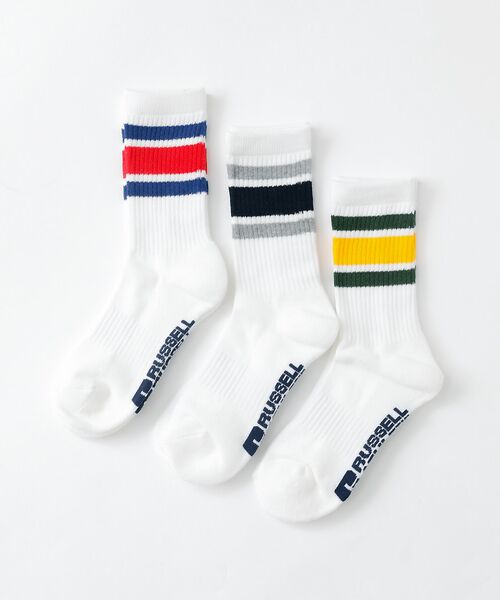 ブルー×オレンジライン、グレー×ブラックライン、ダークグリーン×イエローラインの3足セット。
