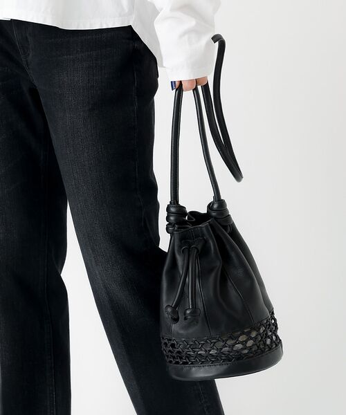 ・手編みのようなメッシュが印象的な巾着ショルダー。